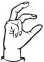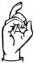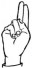 На ћирилици написано НЕВЕНА БИЗУМИЋ састоји се из 13 слова [?]. Исписано ћириличном једноручном азбуком за глувонеме: